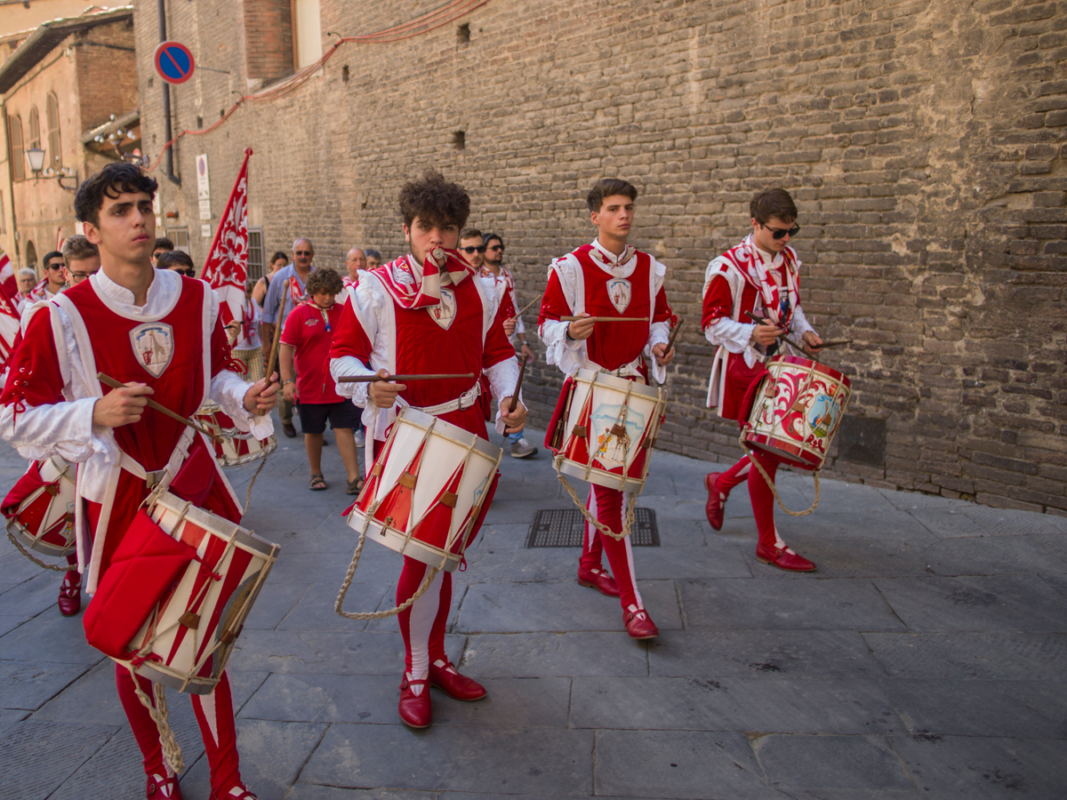 O Palio di Siena ocorre em 2 de julho, a corrida de cavalos mais famosa da Itália na Piazza del Campo. Cada corrida é precedida por quatro dias de celebrações com desfiles históricos, danças e jantares tradicionais nas contradas.